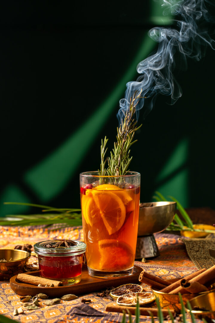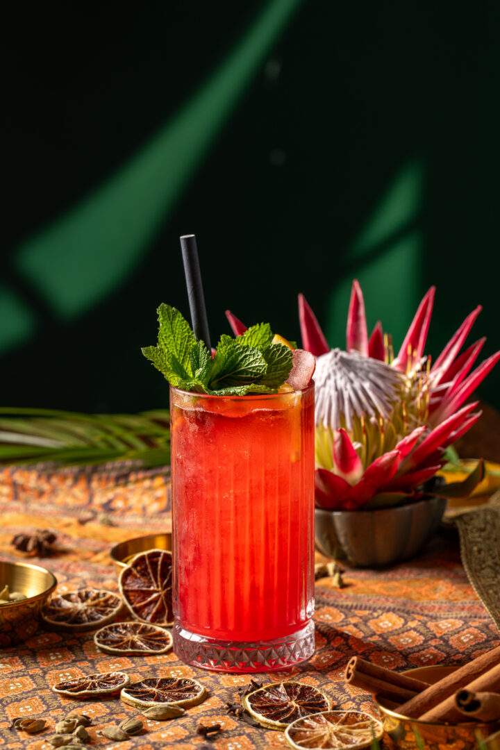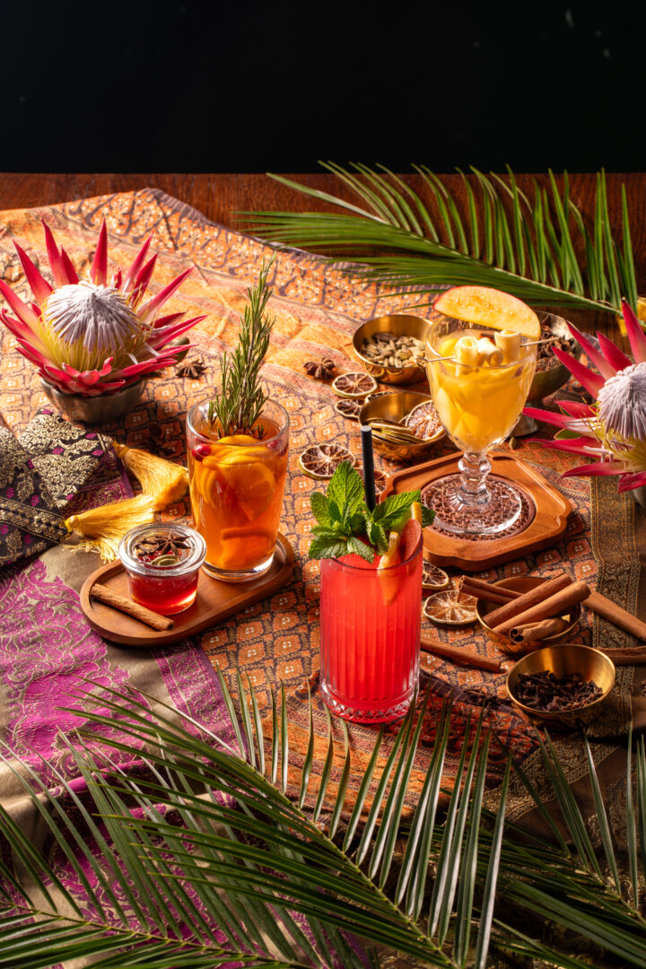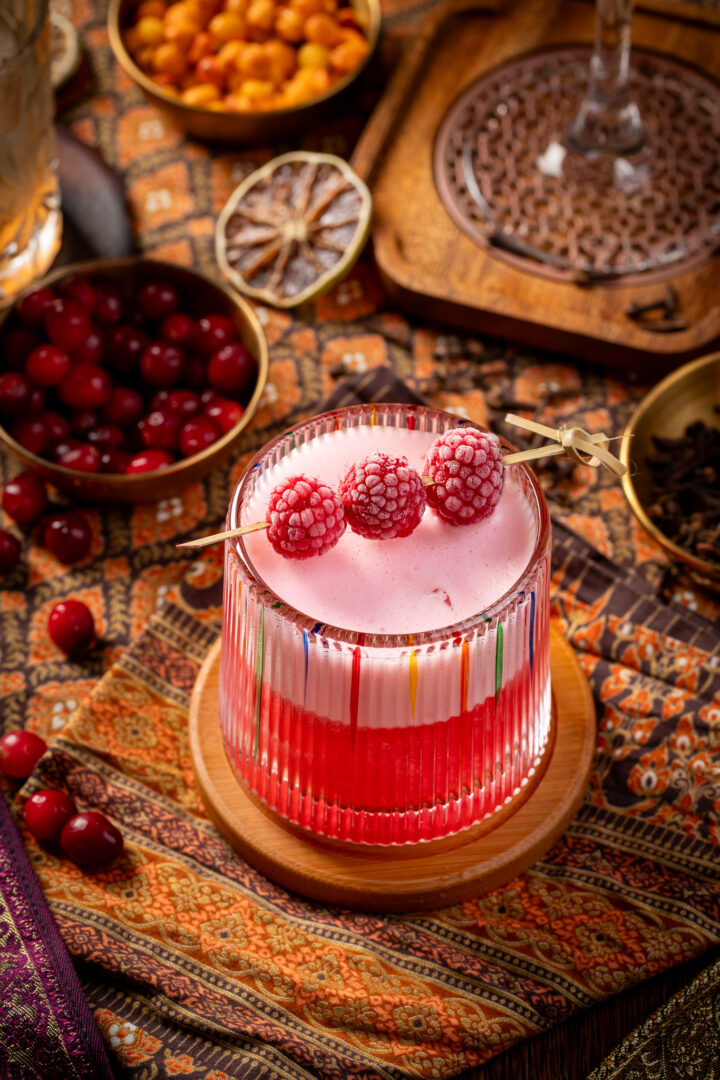 Jesienną kartę dopełniają autorskie napoje: malinowa lemoniada, napar imbirowo-cytrusowy i aromatyczna herbata zimowa, a także koktajle inspirowane Azją – m.in. Jesienny Spritz z whiskey, Malina Sour czy Tajski Old Fashioned na bazie Woodford Reserve i tajskiej herbaty.